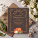 Ein bistre, dunkelbrauner Hintergrund. Mit Kürbissen dekoriert und mit einem handgezeichnet Bogen versehen. Personalisieren Sie die Party-Details und fügen Sie sie hinzu. 1 Blatt = 1 Einladung mit Druckkante bis Kante.