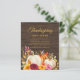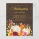 Erntedank Abendessen Einladung auf Haushaltspapier. Fröhliche Herbst-Blume und Herbstblätter mit boho Wasserfarbenkürbis und Skripttext auf rustikalem Holzhintergrund. Klicken Sie auf Anpassen, um den Text, die Farben oder den Hintergrund zu ändern.