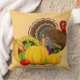 Erntedank werfen Kissen mit einem festlichen Putenprint gezeigt. Passen Sie dieses Kissen an oder kaufen Sie, wie es ist.