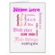 Ich (LeahG) habe diese einzigartige Word-Tag-Cloud-Vorlage erstellt, damit Sie Ihre eigenen Tag-Wort-Cloud-Grüße-Karten erstellen können. Sie können die Textpositionen, die Größe, die Farben und die Schriftart des Wortes bearbeiten und beliebig viele Tagwörter hinzufügen. Sie können mehr Wörter hinzufügen oder sie wegnehmen. Dieses Word Cloud-Template ist nur eine Idee, um Ihnen den Anfang zu machen. Mit Word Cloud-Vorlagen können Sie eine persönliche Wortwolke mit Ihren eigenen Daten, Ihren Lieblingsliedern oder einem neuen Baby zur Aufzeichnung der Geburtsdaten erstellen. Die Optionen sind grenzenlos. Viel Spaß!
