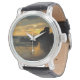Uhr, Vintage Männeruhr mit schwarzem Lederarmband