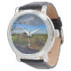 Uhr, Vintage Männeruhr mit schwarzem Lederarmband