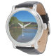 Uhr, Vintage Männeruhr mit schwarzem Lederarmband
