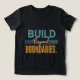 Das Design des T - Shirt enthält den Begriff "jenseits der Grenzen bauen", der in fett gedruckter, moderner Typografie hervorgehoben dargestellt wird. Die Worte sind Set vor einem dynamischen, abstrakten Hintergrund, der Bewegung und grenzenloses Potenzial nahe legt. Das Gesamtdesign vermittelt Ehrgeiz, Innovation und den Power, Hindernisse zu überwinden.