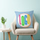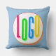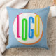 Erstellen Sie Ihr eigenes Logo-Kissen mit diesem lustigen Template Prototypen Design. Das Platzhalter-Logo ist ein farbenfroher Rundkreis, den Sie durch Ihr eigenes Logo, Avatar oder Symbol ersetzen können.
