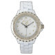 Eine wunderbare Damenuhr mit weißem Armband und grün-weiß-kariertem Ziffernblatt. Trägt sich ganz fabelhaft. Exzellenter Druck, sehr klare Farben. Schönes Design.