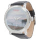Uhr, Vintage Männeruhr mit schwarzem Lederarmband