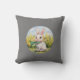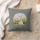 Das ist ein Kissen mit einem niedlichen Kaninchen, das darauf sitzt.
