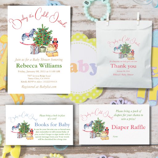 Der Winter ist hier fast schon, also ist dieses Baby It's Cold Outside Baby Shower Theme perfekt, um Ihre Schwangerschaft zu wählen. Weihnachtsbaum mit Geschenkboxen, Nussknacker und Holzpferd in rosa Farbe für Ihr Mädchen auf dem Weg. Passen Sie es mit Ihren Informationen an und schauen Sie sich andere passende Artikel in der Sammlung an oder sehen Sie schönere Themen für Ihre Junge, Mädchen oder geschlechtsneutrale Babydusche in meinem Zazzle-Laden PatternDigitPics. Wenn Sie ein spezielles Produkt mit diesem Design suchen, schicken Sie mir einfach eine E-Mail an: t.dyomushkina@gmail.com