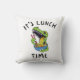 Um wie viel Uhr ist das Mittagessen? Es ist Mittagszeit. Lieblich lustiger Tyrannosaurus beim Mittagessen. Ein perfektes Spiel sowohl für Kinder als auch für Erwachsene.