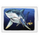 Illustration eines - Titel durch einen kleinen Pufferfisch gegessen zu werden Haifischs ungefähr: Essen Sie den Haifisch, bevor er Sie isst