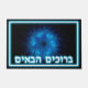 Ein wunderschönes, elegantes, blaues, geätztes Fraktal-Bild eines David-Stars sowie hebräischer Text mit dem Text "B'ruchim Haba'im" (ב ו כ ר ה י ם - willkommen) in blau und weiß.