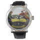 Uhr, Vintage Männeruhr mit schwarzem Lederarmband
