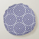 Ethnic Blue & White Geometric Circle Muster Rundes Kissen