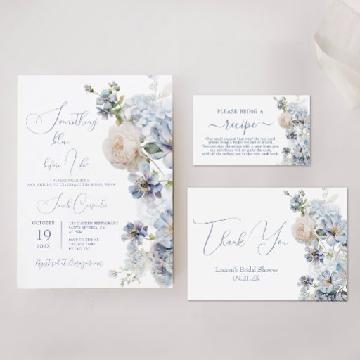 Etwas Blau, bevor ich tue trostlos blaue Aquarell Blumendusche Einladung