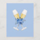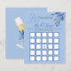 Elegantes Kalligrafie-Script Etwas Blue Brautparty Themed Wedding Bingo Funny Game mit Aquarell-Blume. Auf der anderen Seite gibt es eine Gläser Champagner mit Bouquet.