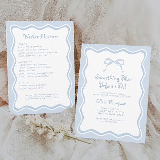 Feiern Sie stilvoll mit diesem Personalisierten etwas Blue Junggeselinnen-Abschied Einladung! Ideal für einen Bachelorette-Junggeselinnen-Abschied oder Bugs, fügt diese Einladung Ihrem etwas Blau eine schicke Touch hinzu, bevor ich feiere. Ideal für den blauen Junggeselinnen-Abschied, ist es ein wunderschöner Weg Freunde zu treffen für ein unvergessliches Erlebnis mit blauen Junggeselinnen-Abschieden!