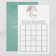 Trendy geometrische Eukalyptusgrün und rot rosa Rosen Babyduschbingokarten mit goldgeometrischem Rahmen und Minze Aquarellspülrückwärts.