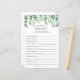 Wer kennt die Braut am besten? Brautparty-Spielkarte mit einer Aquarellkaskade aus Grün und Blütenblättern.