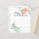 Das Design ist mit einem weichen Eukalyptusmuster in Aquarellfarbe und einer orange/pfirsichfarbenen Blume mit passendem Band gestaltet. Die Rückseite besteht aus einem koordinierenden Design und einem eleganten, goldfarbenen ovalen Rahmen mit Aquarellfarben Eukalyptusstemmen und einem pfirsichfarbenen/orangefarbenen Band. In unserem Zazzle-Shop finden Sie passende Artikel, um Ihre Veranstaltungskollektion abzuschließen!