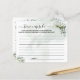 Time Capsule Game Card Polterabend Englisch und Spanisch Version Spiel inklusive (vorne und hinten). Fügen Sie Bride & Groom's Name in die Vorlage für Englisch und Spanisch. Für weitere Anpassungen (Umformung, Schriftart, Stil des Schriftartes), klicken Sie auf Personalisieren, scrollen Sie nach unten und klicken Sie auf den Link "Klicken Sie auf, um weiter anzupassen". WIE MAN SPIELEN KANN: Die Gäste füllen eine Karte aus, um ihre besten Ratschläge zu teilen, Vorhersage für das glückliche Paar