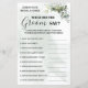 Was hat der Groom gesagt? Brautparty Englisch und Spanisch Sprachspiele inklusive (vorne und hinten). Ändern Sie den Bride Groom in die Vorlage für die englische und spanische Version. Für weitere Anpassungen (Fragen und andere Formulierungen ändern, Schriftart Farbe, Schriftart Stil ), klicken Sie auf Personalisieren, scrollen Sie nach unten und klicken Sie auf den Link "Klicken Sie auf, um weiter anzupassen". WIE MAN SPIELT: Die Gäste raten die Antworten, die der Bräutigam über die Braut sagte