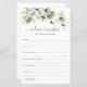 Diese schönen, botanischen, handgeschriebenen Skripte Advice & Wishings Blätter mit Aquarell Eukalyptus mit Goldverzierungen an der Spitze sind perfekt für Brautparty-, Probe- oder Hochzeitsgäste. Die Menschen werden die Liebe haben, die Anweisungen zu bekommen - sie machen es so einfach, liebende Ratschläge und gute Wünsche verlassen. Sie werden noch auf Jahre geschätzt.
