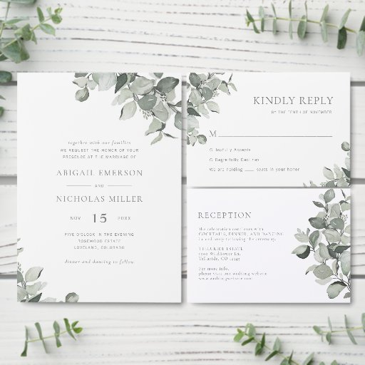 Simple & Chic Eucalyptus Wedding InvitationsDesignt von Wendi R