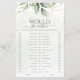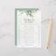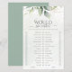 Dieses charmante Spiel mit dem Titel "Wollt ihr lieber" zeichnet sich durch ein zartes Design aus Eukalyptusgrün und sanften Goldakzenten aus und schafft eine schicke und elegante Atmosphäre für Ihr Brautparty. Das Spiel beinhaltet eine Reihe spielerischer und zum Nachdenken anregender Fragen, die Lächeln und Gespräch unter Ihren Gästen auslösen werden, während sie versuchen, die Präferenzen der Braut vorherzusagen. Mit seinem schönen Design und interaktiven Format wird diese lustige Party-Aktivitätskarte sicher eine unvergessliche Ergänzung zu Ihrem Brautparty sein.