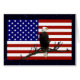 Ein Bald-Adler scannt den Himmel von seiner Terrasse auf einem Baumzweig, überlagert auf einer Fahne der Vereinigten Staaten.