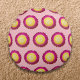 Nahtloses Muster ewiger Blume mit tiefen rosa Blättern und gelber Scheibe auf Rundkissen bedruckt. Blumenkissen für Liebhaber von Blume und die Schönheit der Natur auf Ihrem Stuhl, Sofa, in Ihrem Schlafzimmer oder Wohnzimmer hinzufügen. Sie können es auch als Geschenk geben.