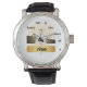 Uhr, Vintage Männeruhr mit schwarzem Lederarmband