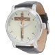 Uhr, Vintage Männeruhr mit schwarzem Lederarmband