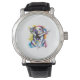 Uhr, Vintage Männeruhr mit schwarzem Lederarmband