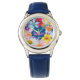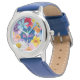 Kinderuhr aus Edelstahl mit blauem Lederarmband