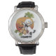 Uhr, Vintage Männeruhr mit schwarzem Lederarmband