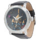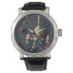 Uhr, Vintage Männeruhr mit schwarzem Lederarmband
