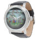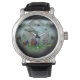 Uhr, Vintage Männeruhr mit schwarzem Lederarmband