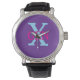 Uhr, Vintage Männeruhr mit schwarzem Lederarmband
