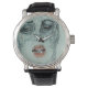 Uhr, Vintage Männeruhr mit schwarzem Lederarmband