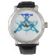 Uhr, Vintage Männeruhr mit schwarzem Lederarmband