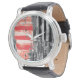 Uhr, Vintage Männeruhr mit schwarzem Lederarmband