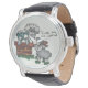 Uhr, Vintage Männeruhr mit schwarzem Lederarmband