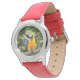 Uhr, Kinderuhr aus Edelstahl mit rosa Lederarmband