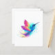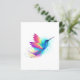 Heller, schillernder, exotischer, fliegender Kolibri auf weißem Hintergrund, übermalt mit mehrfarbiger Aquarellfarbe. Regenbogen-Kolibri.