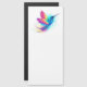 Heller, schillernder, exotischer, fliegender Kolibri auf weißem Hintergrund, übermalt mit mehrfarbiger Aquarellfarbe. Regenbogen-Kolibri.