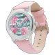 Kinderuhr aus Edelstahl mit rosa Lederarmband