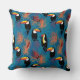 "Bringen Sie die Tropen-Zuhause mit diesem kräftigen Kissen, das sich mit einem sich wiederholenden Muster spielerischer Toucans und üppiger Palmen-Blätter auszeichnet. Die schwarzen Toucans mit ihren farbenfrohen Schnallen heben sich vor dem beruhigenden blauen Hintergrund ab, ergänzt durch lebendige orange und rote Blätter aus Palmen. Dieses dekorative Kissen verleiht jedem Sofa, jedem Sessel oder jedem Bett eine Touch exotischen Flairs