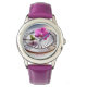 Exquisite rosa Orchideen-Erholungen auf Silberplat Armbanduhr