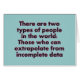 Dieses liest, "dort sind zwei Arten Leute in der Welt: Die, die von den unvollständigen Daten extrapolieren können"